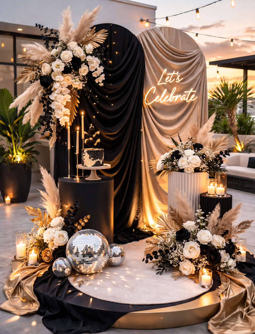 Arc & Stem designs intentional event environments where atmosphere, texture, and movement shape the experience of a space.